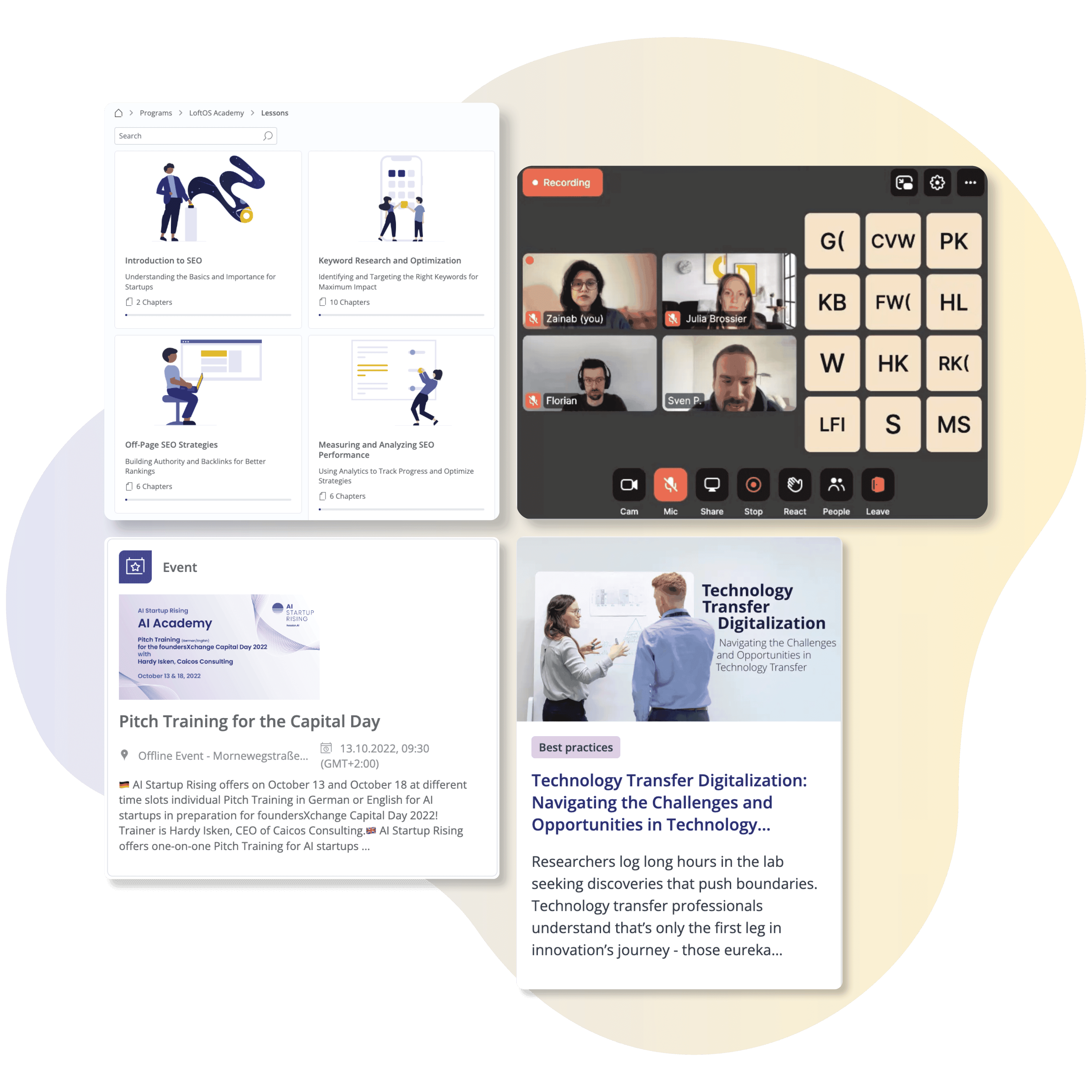 Unsere No-Code-Plattform LoftOS zentralisiert die Prozesse des Technologietransfers in einer All-in-One-Lösung, sodass du sie ganz einfach nutzen kannst: